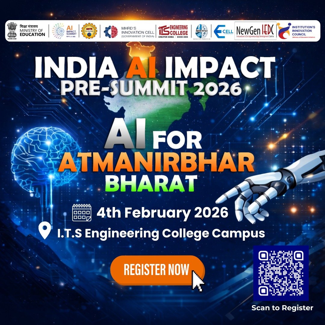 INDIA AI IMPACT – Pre Summit 2026” as part of the AICTE–HEI AI Impact Pre-Summit Activities 2026 being organized by I.T.S Engineering College, Greater Noida, in association with AICTE, New Delhi and Navrachna Foundation for Entrepreneurship Development (NFED) & E - CELL - ITSEC. |